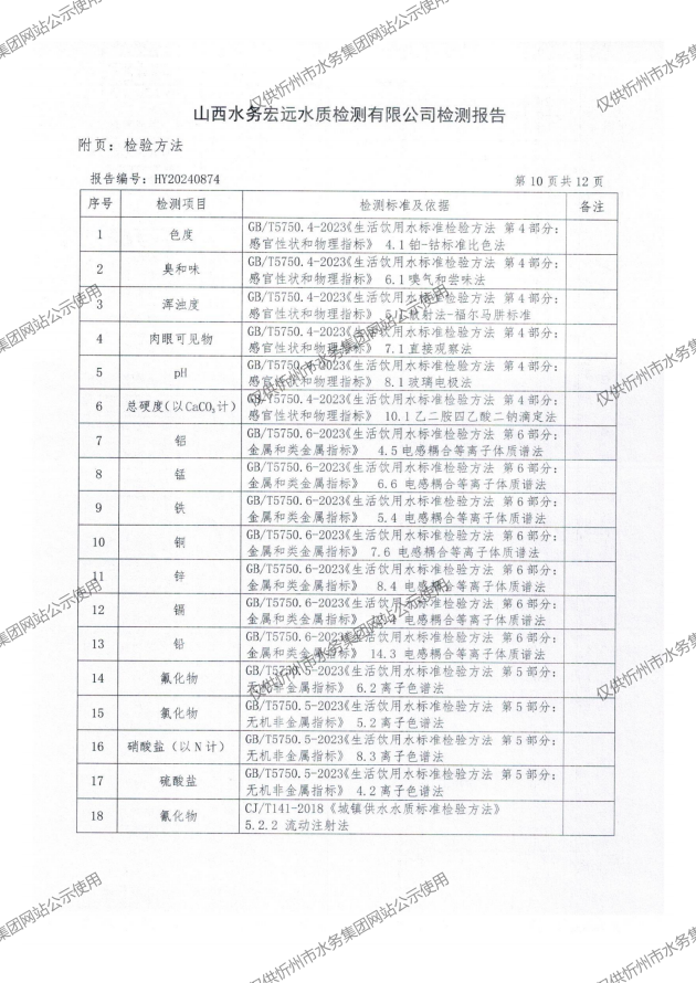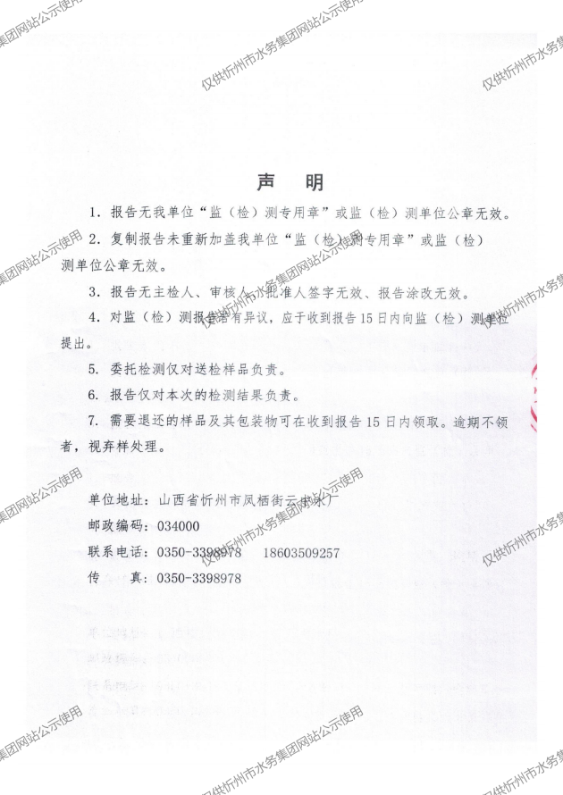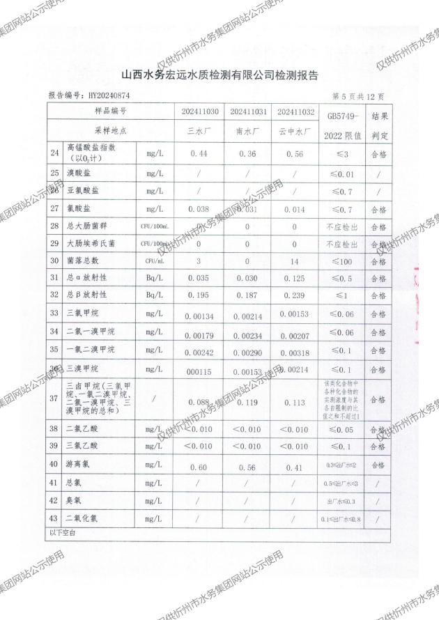 忻州城區(qū)公共供水水源水、出廠水、管網(wǎng)水、管網(wǎng)末梢水2024年11月份水質信息公示