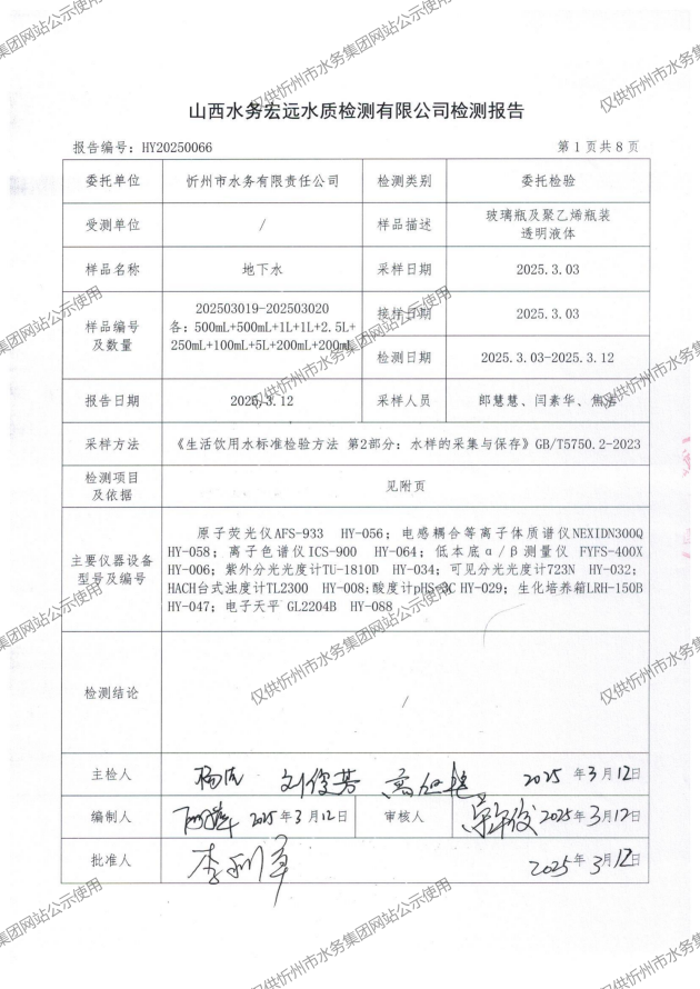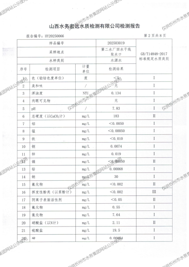 忻州城區(qū)公共供水水源水、出廠水、管網(wǎng)水、管網(wǎng)末梢水2025年3月份水質(zhì)信息公示
