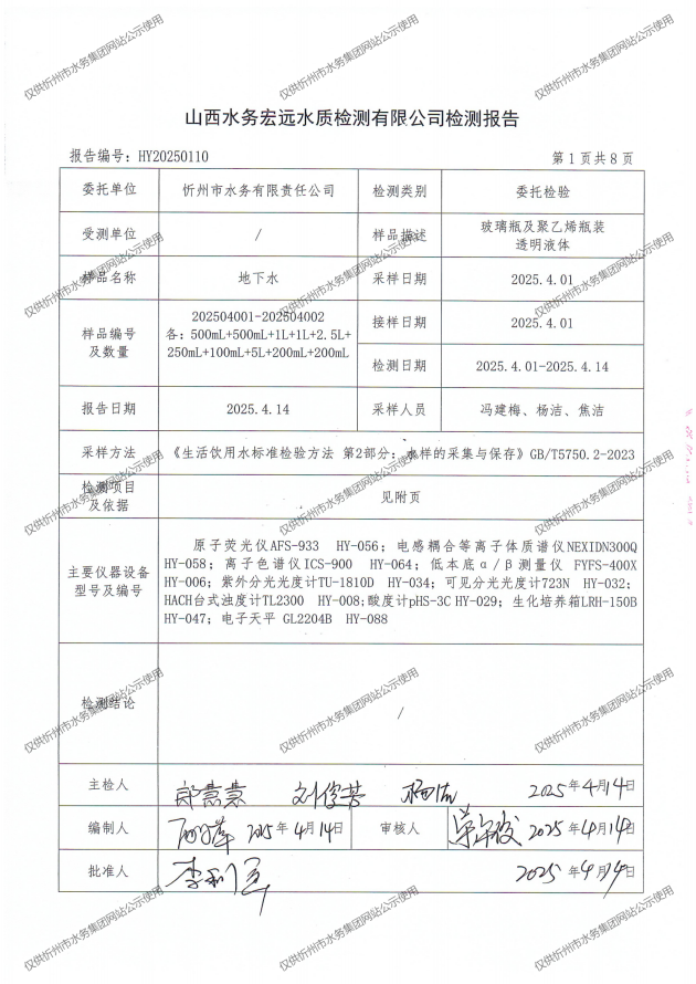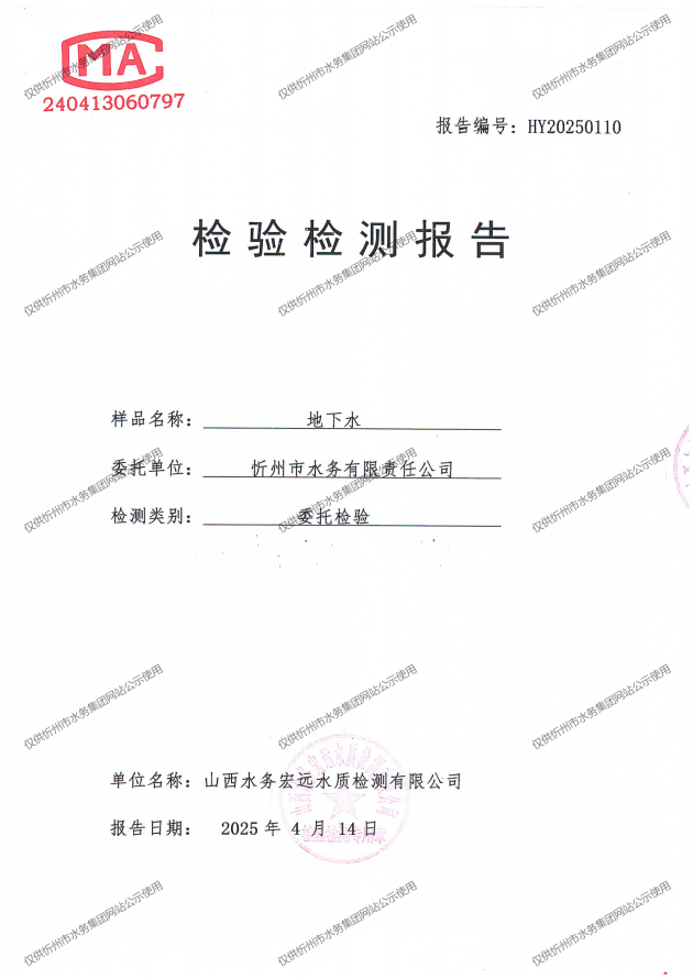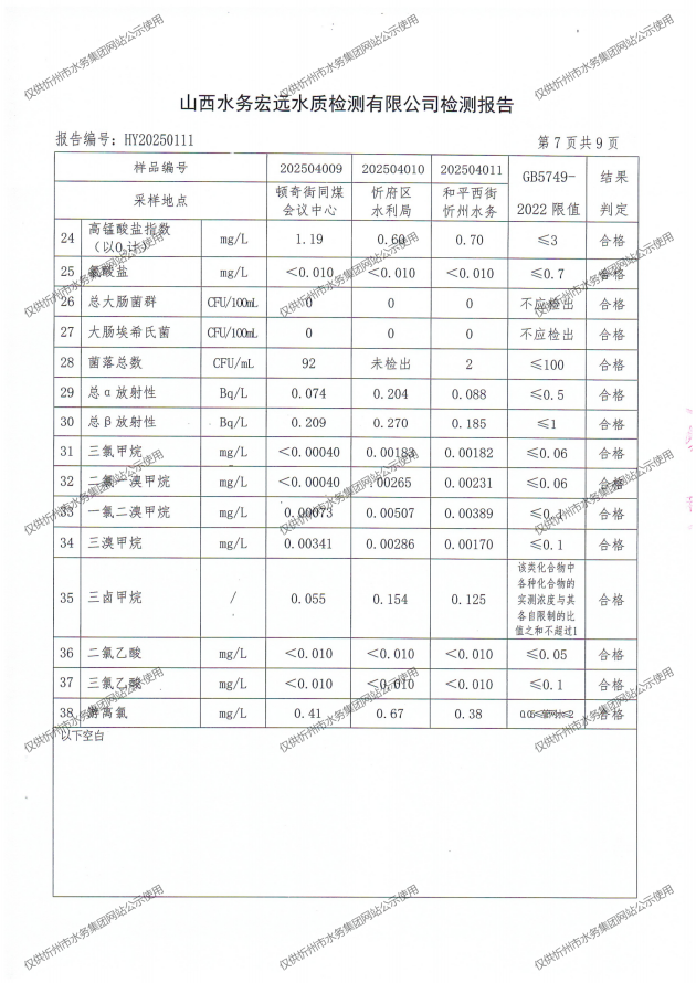 忻州城區(qū)公共供水水源水、出廠水、管網(wǎng)水、管網(wǎng)末梢水2025年4月份水質(zhì)信息公示