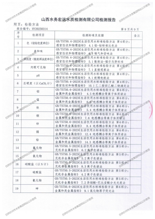 忻州城區(qū)公共供水水源水、出廠水、管網(wǎng)水、管網(wǎng)末梢水2025年6月份水質(zhì)信息公示