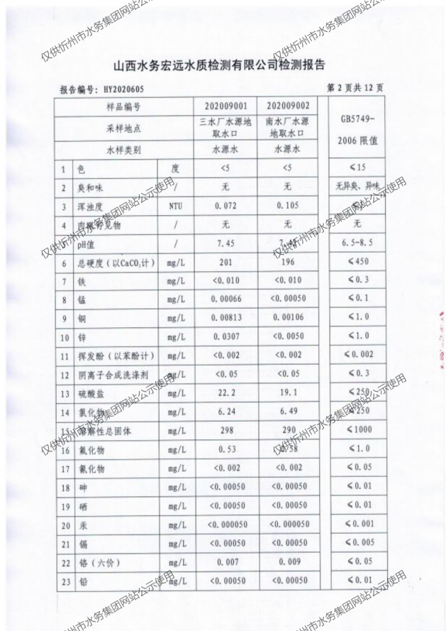 忻州城區(qū)公共供水水源水、出廠水、管網(wǎng)水、管網(wǎng)末梢水2020年9月份水質(zhì)信息公示