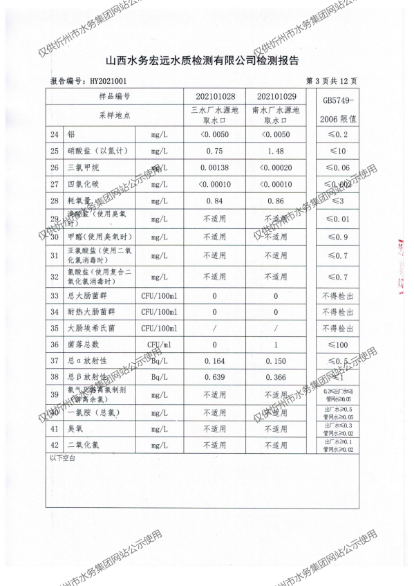 忻州城區(qū)公共供水水源水、出廠水、管網(wǎng)水、管網(wǎng)末梢水2021年1月份水質(zhì)信息公示